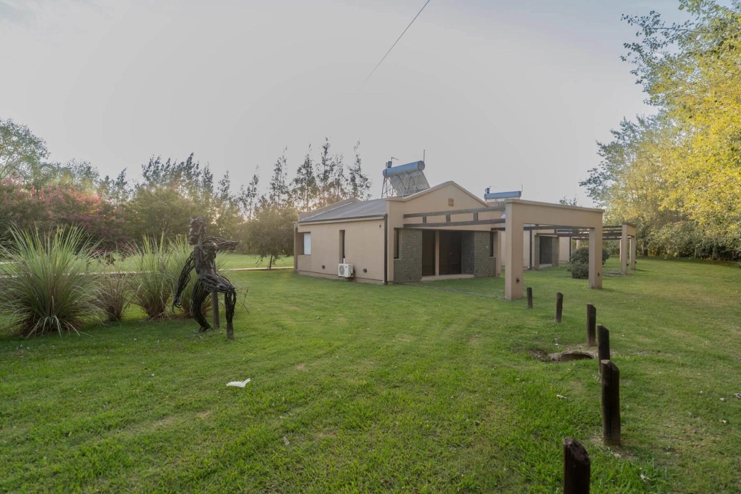 Cuatro hectáreas de maravillosos espacios verdes y frondosa arboleda. Una delicada pérgola para altar de ceremonias y 8 cómodas posadas exclusivas para invitados a los eventos.